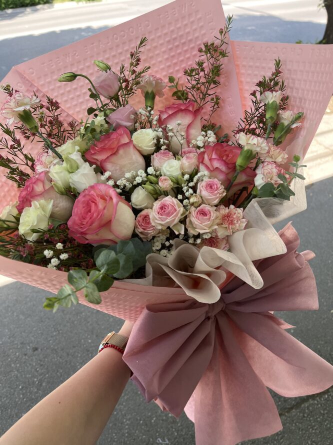 Ovaj šareni buket sadrži raznovrsno cveće – ruže, gerbere, ljiljane, margarete i alstromerije, upakovane sa stilom i pažnjom. Miks buket je odličan izbor kada želite da izrazite više emocija odjednom – ljubav, sreću, prijateljstvo i nežnost.